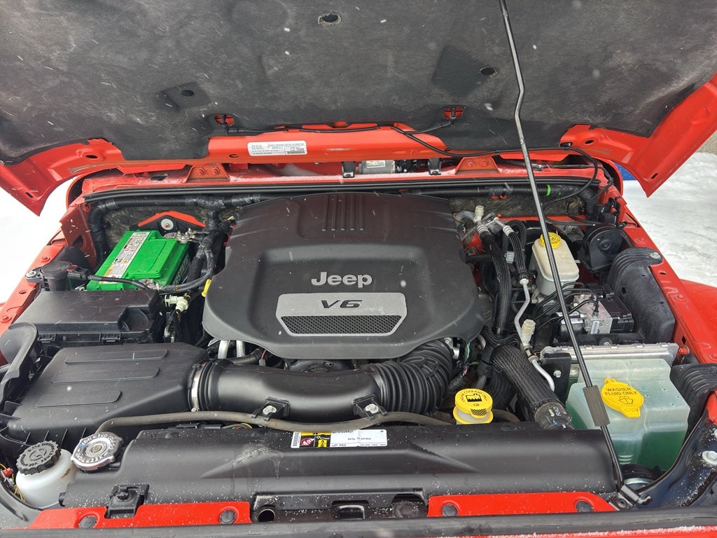 Our dealership has already run the CARFAX report and it is clean. A clean CARFAX is a great asset for resale value in the future. The Jeep Wrangler features a hands-free Bluetooth® phone system. Maintaining a stable interior temperature in this model is easy with the climate control system. It has four wheel drive capabilities. The Jeep Wrangler has a V6, 3.6L high output engine. This 2015 Jeep Wrangler shines like the sun with a vibrant orange exterior finish. The Electronic Stability Control will keep you on your intended path. This vehicle features cruise control for long trips. Enjoy the tried and true gasoline engine in it. Anti-lock brakes will help you stop in an emergency. This unit has fog lights for all weather conditions. The high efficiency automatic transmission shifts smoothly and allows you to relax while driving. This mid-sized SUV is perfect for your next adventure.